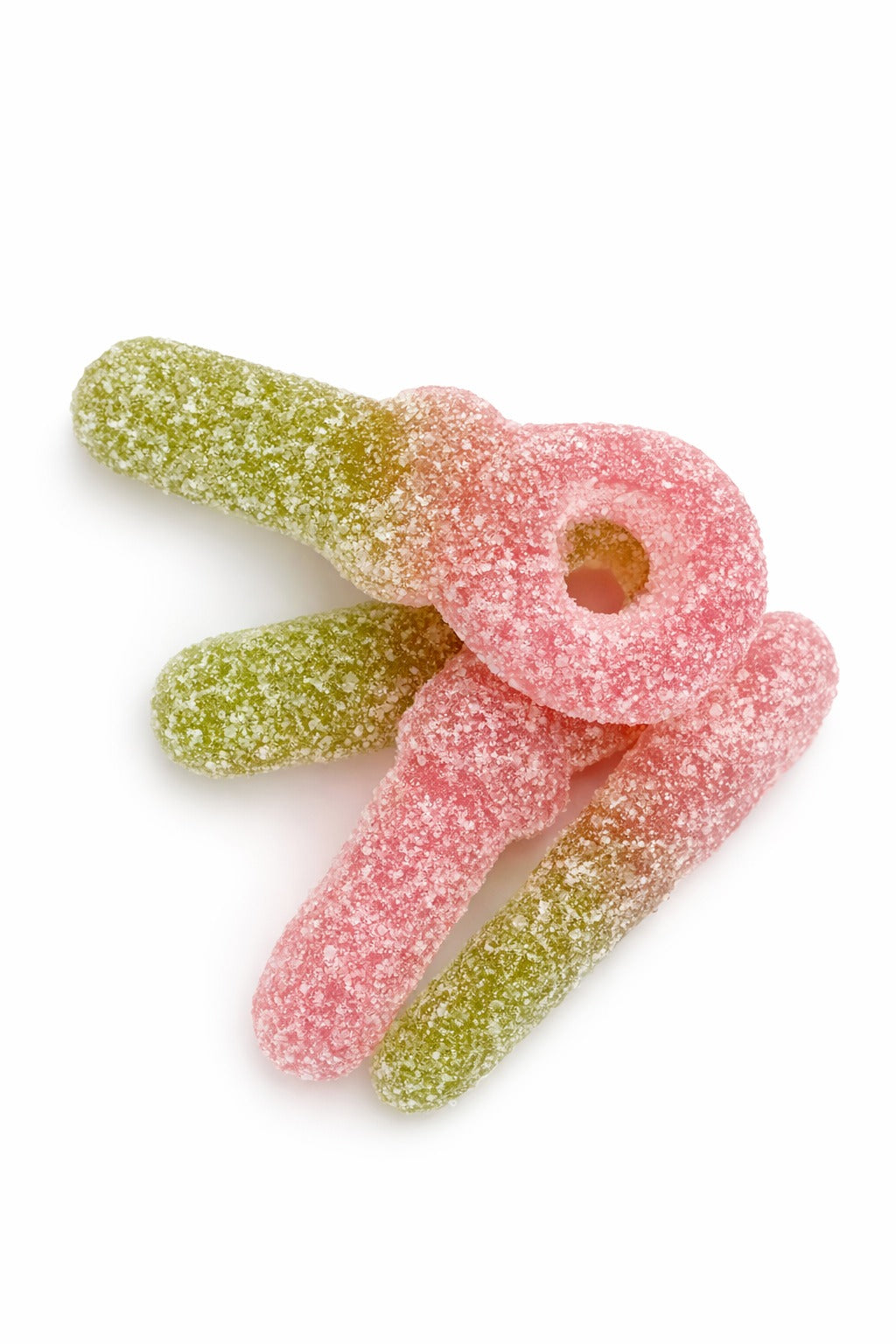 Sugar, glucose syrup, wheat starch, water, modified corn starch, acids (E270, E296, E330, E350), modified potato starch, flavors, colors (spirulina and safflower concentrate), black carrot juice concentrate